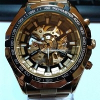 Reloj automático skeleton dorado