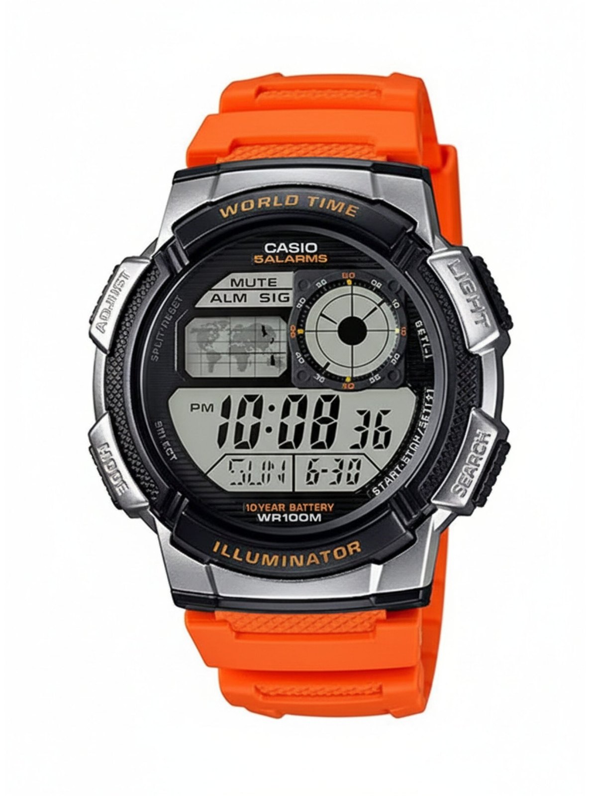 El Casio AE-1000W-4BV es un reloj digital multifuncional diseñado para aventureros y viajeros. Su mapa mundial digital, su resistencia al agua y su diseño robusto lo hacen ideal para quienes buscan precisión y durabilidad. Cuenta con hora mundial, cronómetro, temporizador y alarmas, todo controlado con facilidad gracias a su interfaz clara y su pantalla de alta legibilidad.