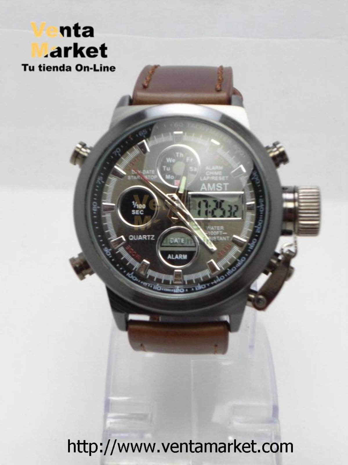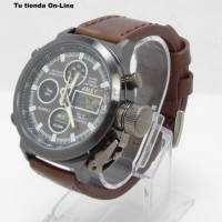 Reloj Análogo Digital Caja Metálica Pulsera Cuero
