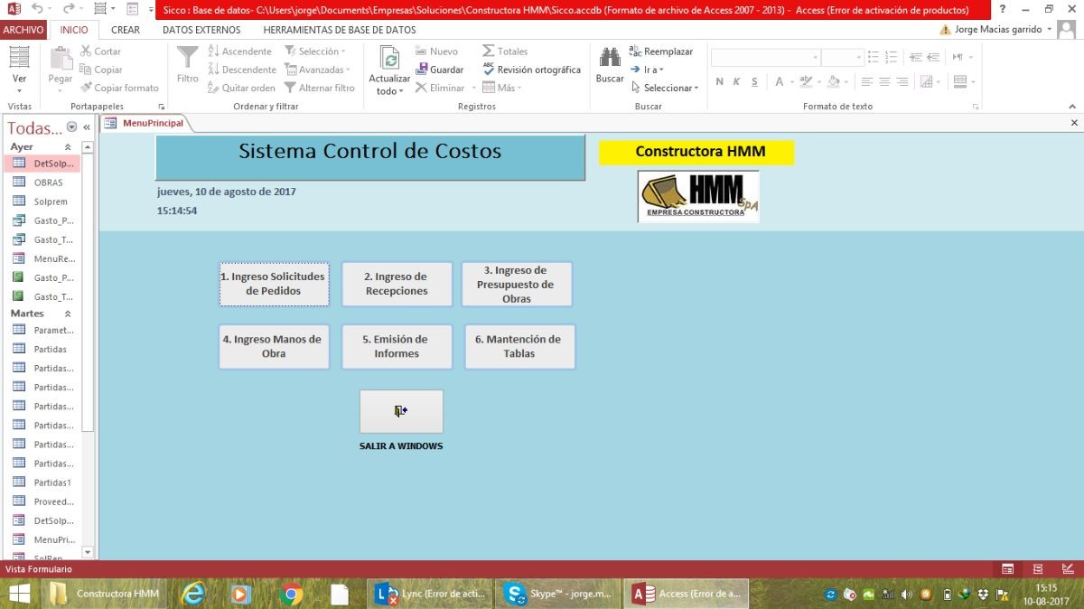 Desarrollo de una Solución con Base de Datos Microsoft Access para Obras de Construcción.